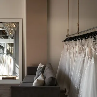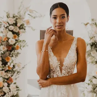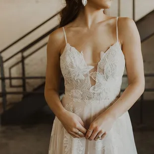I will be honest, I was not SUPER stocked about going wedding dress shopping... I think I was trying not to have such high expectations to avoid being disappointed if I didn't find "the one". My experience ended up being a lot less stressful than I was anticipating though, and was actually SUPER laid back. I enjoyed the whole thing WAY more than I thought I would have, and the best part was I ended up finding my dress! :)During my appointment I was lucky to have had Carly as my designer. Having an open mind, I listened to her suggestions while she made sure to consider mine. I really appreciate how trying on multiple styles was encouraged, I ended up really liking styles I would not have! Also, Care made sure she really had an idea of what the overall vibe of my wedding was which ended up being really helpful when it came to narrowing down my favorites!
