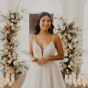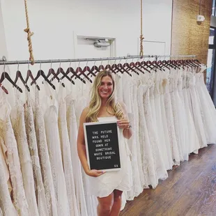 I'm so glad I decided to check this place out! My family and I decided to do an impromptu wedding dress search over the weekend, so I decided to book a reservation the night before. Someone called to let me the next morning to let me know they had a cancellation at 11am, so we took it. This was my first time trying on wedding dresses, so I didn't have any expectations, but also didn't know what to expect. Paige, the owner, helped me and was so sweet! She was patient, kind, and knew how to guide me perfectly in finding my wedding dress! She was very professional and gave good advice throughout and never felt pushy. Although it is a smaller boutique, they had tons of styles, prices and options. My dress literally has everything I asked for, and more. I'm so pleased with this shop, and will recommend it to all future brides!