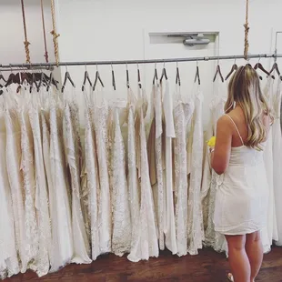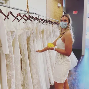 Working with Sarah at SWBB was great! She was knowledgeable, friendly, and made me feel very comfortable. They had many accessories to make it feel real. They also worked with me on any changes I wanted to make and did not pressure me one bit. I found my dress and celebrated with champagne! 10/10 experience!