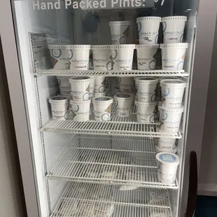 Ice cream pints and sandwiches