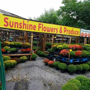 I love this place!! One stop shopping for all your autumnal and holiday needs:-beautiful pumpkins (prized in 3 or 4 categories according to size... you can get a decent one for 6 bucks and a monster-sized pumpkin for 12 bucks)-pie pumpkins for 1.99!-all sizes/shapes of ghords (small ones start at about a dollar)-decorative hay bales and corn stalks-*extremely* friendly and helpful staff (they'll load your hundred pounds of pumpkins in your car, even!)I don't want to sound like a party pooper but I'm a bit over the whole "go to the farm" experience that seems to be rather pricey, even to a New Yorker like me. This goes for Christmas trees, too. When I think of the size tree I could get at a corner lot in Brooklyn for the price they are selling Charlie Brownesque trees at in these places, well... yeah, I get cynical. Don't get me wrong. I want to support the local farm as much as the next person but at a family-owned nursery like this one, you are coming as close as you can. I mean, I'll do what it takes to avoid buying this stuff at Home Depot (probably because I avoid HD at all cost). Anyway, say you're short on time and don't want to drive to a farm, nor o you have time for the whole experience involved... Thank you for being just a couple blocks away, Sunshine Flowers and for having such fantastic staff, quality items and prices.