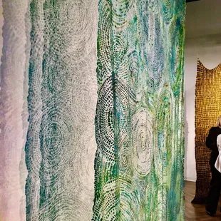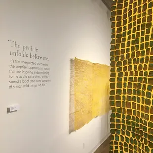 I really like the Box Gallery. They always have exceptional exhibits and It is Free and open from 8 am to 8 pm Mon-Fri and is located on the skywalk system downtown in the Commerce Arcade (near coffee kiosks, offices and restaurants like Charisse) and just a block from the Central Library. I wanted to Update my review to highlight the current show which ends Thursday January 25. It is really cool and worth a special trip to see! Susan Lordi Marker's "Echoes Of The Prairie: Works in Cloth" features beautiful textiles of silk, linen and cloth treated with mild acids and adorned with dyes and sometimes gold leaf that create a beautiful narrative of the light, colors and shadows that interplay in prairie ecosystems. Her passion and love for them and desire to raise awarness to their plight is inspiring. I especially love the storyboards that offer more information on the prairies and give you a chance to touch samples of all of the different fabrics and describe the artist's techniques.The exhibit is only open a few more days so get down there ASAP. Check out my pics below! #ericnielsenkc #boxgallery #susanlordimarker#kanzaprairie #missouriprairie #monarchwatch