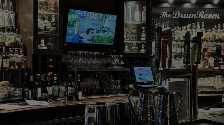 a bar with liquor bottles