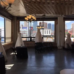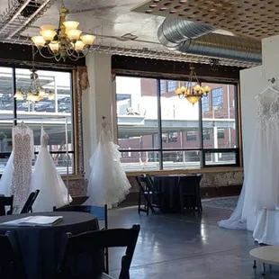 The Gown Gallery is in a really beautiful building downtown, and the interior is modern and cool, with a fantastic view of downtown KC. They have an excellent selection of mid to high end gowns and personal consultants for each bride-to-be. I was recently the guest of a family member who is engaged, and obviously very excited to say "yes to the dress", but unfortunately The Gown Gallery fell flat. Upon walking into the boutique, we were asked to sit down and we were offered water. We sat at a table for 13 minutes waiting...with no instructions, and nothing to do, when we were finally told our consultant was finishing up with someone else and would be with us shortly. We sat for 15 more minutes and eventually our consultant joined us. This would have been so much better if we'd had a book of dresses to look through or offered a refill on the water...anything would have been better than awkwardly sitting in the middle of a room with nothing to do. When our consultant finally joined us, she was very "business-like", and didn't seem very happy for our sweet bride at all. I understand that people buy wedding dresses every day....but brides want to feel special, and her entourage wants to have fun with her while she tries on her potential gowns. At one point we told the bride we didn'tlike a dress she was wearing, and we were actually scolded a bit by the consultant....but that's why she brought us with her! This was not a fun and exciting experience for any of us, and we did not end up purchasing a gown here. The bride told me later she didn't feel like the consultant listened to her likes and dislikes very well. The Gown Gallery has gorgeous dresses, but the experience overall was not pleasant, and our bride ended up finding a dress elsewhere that day.