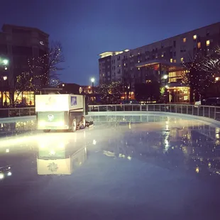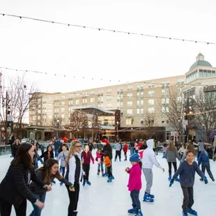 This was a fun experience for the kids, we took them here to enjoy family time together. Staff were helpful but they were very busy considering it was the holiday season. The place was super packed with a bunch of teenagers but our kids enjoyed themselves regardless. The skating ring is not huge but big enough. I just wished they had heating lamps around the area as it was so cold out. They have public restrooms that were nicely maintained and heated surprisingly right around the corner. There is a parking garage but it does get full. There are lots of other restaurants around this ice ring so it's nice if you get hungry you can get something. $25 per person includes skates.