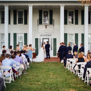 An outdoor wedding ceremony on the lawn
