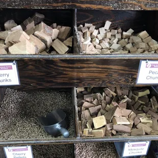 Pit barrel smokers, offset smokers, big green eggs, tragers, Weber smoky mountains, hundreds of dry rubs and bbq sauce, all the accessories a pitmaster and aspiring bbq aficionado would enjoy. Various types of smoking wood as well, and even frozen snake river farms briskets ranging from 12-16 lb range as well.Definitely worth a visit if you're in the area of getting Kansas City Joe's famous bbq.