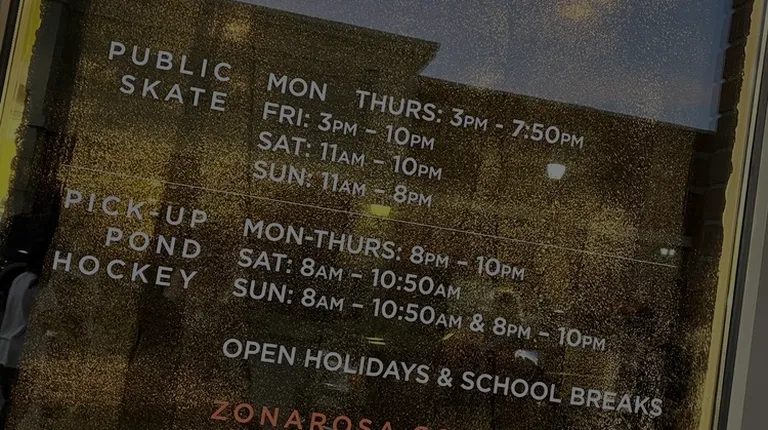 The Northland's newest ice rink is at Zona Rosa this winter season. The Rink at Zona Rosa is open daily through February 2021 for public ice skating, curling, pond hockey, special events and more.Enjoy shopping from local and national retailers, an eclectic mix of restaurant options and ice skating under the lights at Zona Rosa.SKATE SESSION PASS Admission: $11 (Children 3 and Under Free) Skate Rental: $4 (or bring your own skates!)AFTER SCHOOL SESSION PASS (3PM - 5PM) Admission: $9 Skate Rental: $411 VISIT PASS Bring your own skates: $110 Rental skates included: $150OPEN POND HOCKEY PASS 80 min.: $12 Hockey skate rental: $4 Hockey stick rental: $4OPEN CURLING 60 mins. $18 per person, 4 man teams. Includes 60 mins of play plus curling gear rentalINTRO TO CURLING LESSONS 90 mins. $30 per person. 30 mins with instructor and 60 mins playSKATE LESSONS (30 MIN EACH) Ice skate (4 lessons): $60 Private lesson (1): $50 Learn to play hockey (4 lessons): $60Masks required and 6 feet social distancing. The Rink subject to all KCMO mandates, including a 50% occupancy limit and follows all local, state and national guidelines for stopping the spread of the virus. HOURSOPEN SKATE HOURS/SCHEDULEMon - Thurs: 3pm - 8pmFri: 3pm - 10pmSat: 11am - 10pmSun: 11am - 8pmPOND HOCKEY (WALK ON) SCHEDULEMon - Thurs: 8pm - 10:00 pmSat: 8am - 10:50amSun: 8am - 10:50am AND 8pm - 10:00pmSCHOOL BREAK HOURSEffective Mon-Fri. Dec 23 - Jan 4, Jan 15, Jan 18-19, Feb 26-288am - 10:50am: Pond hockey11am - 10pm: Open skateHOLIDAY HOURSChristmas Eve, 3pm - 8pmChristmas Day, 4pm - 9pm (Pond hockey 9pm - 10:00pm)Also open on: New Year's Eve/Day, Martin Luther King, Jr. Day, and President's DaySAVE & SKATE: INDIVIDUAL & GROUP DISCOUNT OFFERS Discounts are listed below and are not valid with any other offer. No matter the budget, The Rink can put together a package to benefit both you and your organization. Options include public or private parties and food packages, depending on needs.GROUP ADMISSION (Plus $4 Skate Rental Fee) 20-30 people: $1 off each admission 31-50 people: $2 off each admission 51+ call for quoteBIRTHDAY PARTIES - includes skate pass + skate rental + hot chocolate + sweet treat. (Additional food/drink options are available upon request.) Up to 20 Skaters: $17 each 21-30 Skaters: $16 each 31 and Over: Call for quote Special Host: Add a Figure Skater or Hockey Player host for $50PRIVATE PARTIES (RINK RENTAL) The Rink at Zona Rosa invites your group for an afternoon or evening of fun. Perfect for groups of all sizes, The Rink can accommodate you or your organization for family gatherings, office parties, school-related events, fundraisers, team practices, skill clinics, pond hockey, etc.Based on availability. Advanced reservations are required for group rates and private parties.To Sponsor an event Email: [email protected]