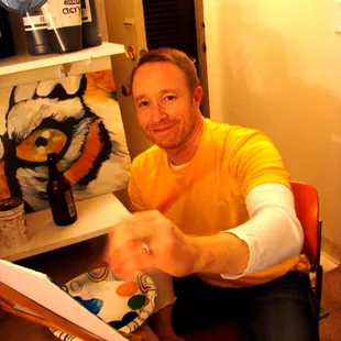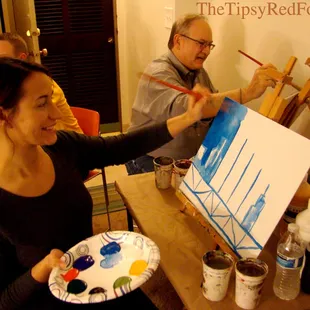 I rarely ever write any reviews but in this case I felt it was so necessary to do so that I had siri remind me. In my case, this whole thing was a surprise date...so when I see a random guy bringing paint supplies and easels into the house, I was nervous that the entire experience would be brutally awkward (we had only been on a few dates and it would just be us and stranger). Boy was I wrong. Within 10 minutes we had skipped surface banter and was laughing and joking around like we'd all been friends for years. Which made paint instruction so much easier because we had developed a small friendship. He encouraged rogue creativity and helped us get loose and silly in almost an improv like way. Don't miss out on this more intimate and entertaining version of paint classes. This experience is worth so much more than what you pay for.