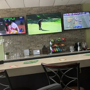 Tom, the owner, was very accommodating and friendly during our visit. He made sure we knew how to work the software and set us up to play an awesome course. The Space itself is perfectly sized for small groups to play some fun rounds of golf and enjoy a beer. There are some TVs behind the bar and plenty of high tops For seating. With the weather turning colder, this is a great place to come practice your shot or have a fun evening with friends. Rates are reasonable, leagues and lessons are available too!