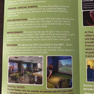 Tom, the owner, is a heck of a nice guy. I came into KC early to get a round of golf in before my family got here, of course it was raining out. After a google search I found True Aim. Tom got me in right away, explained the technology to me (which is great btw), and not only did I get to swing for a couple of hours but I really got to work on my game. My only regret is that I don't live in KC so won't be able to come back as often as I'd like. Thanks, Tom, best of luck and hope to see you again soon.