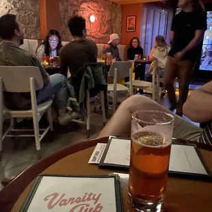 This was my first time at Varsity Club. I really enjoyed my time there. One of the owners came and talked with our group.While I personally don't partake in a. Alcoholic beverage the NA drink I had was fantastic. It was called the Bangarang. You can also get it with your spirit of choice. Others in my party did have drinks and I heard no complaints.You also have the option to order food from the food truck on the outside patio. Everyone's food looked delicious and there was nothing left behind. It's a great place to link up with finds for a drink after work, we were there on a Monday night and while not packed, there was still a decent crowd.