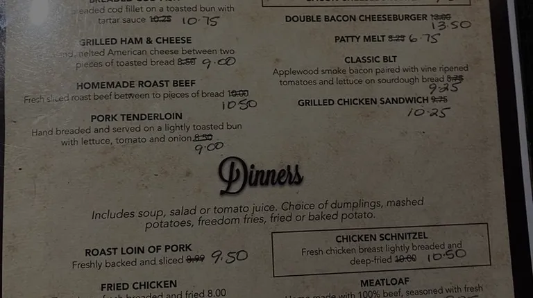Great food! Burgers are handmade and delicious! You must try this place! Meatloaf is good and a huge portion. Pizza is fresh and tasty, thin crust. Daily specials are on their Facebook page.