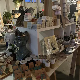 Love the different artists they showcase here!! Have purchased stickers, plants, clothes, Knick knacks, planters, earrings, and so much more...Love the care they give their plants before they find a forever home...lots of varieties!!Have a really cute vintage pieces laying about, and nice clothing there to thrift..Love the staff and they will pot your plant for you!!Love their workshop areas and highly recommend getting your next little guy here