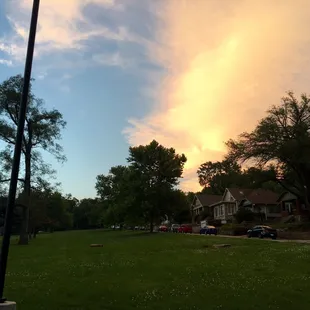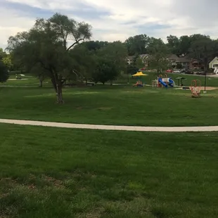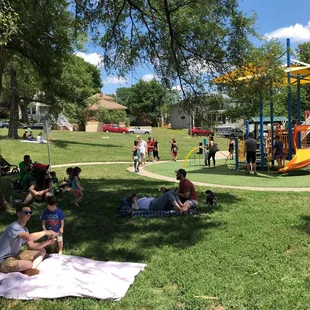 Beautiful park in a beautiful neighborhood. Neighborhood picnics happening all the time, the playground is always full of kids. Dogs meet for a little playtime too.