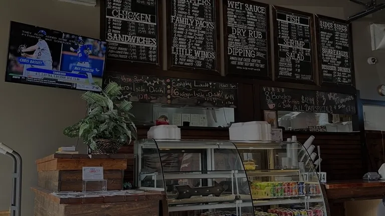 I wasn't sure about this place when I pulled up. There was no one here. We trusted the Yelp reviews and I am so glad we did! Food is amazingly good. My fish and shrimp were crispy. The dry rub packs a punch. They are light in the breading with is a welcomed change. The wings are HUGE! We ordered way more food than we needed lol. Would definitely recommend this place! Service was great with smiles all around. The inside is cute with an ivy covered wall highlighting their name. A few TVs going with different games/shows.
