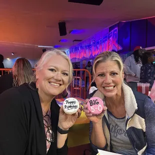 I'm usually all about the food, on Yelp that is. I usually only review food, but I've got to throw some love to Winwood Skate Center. When I was planning my 50th birthday party I wanted a place that would be fun for all ages, friends, family, like my parents, my nieces, nephews, my teenagers and my grands. When you are about to turn 50, it's a milestone, and I believe it's something you should be proud of and celebrate with flair! Looking back over the years some of my favorite birthday parties were at skating rink, and I essentially lived at the Roller Drome back in ABQ. I decided I wanted to celebrate the big 5-0, on some quads, with my favorite people in the world, and luckily they were there for it.We had an epic time and my heart was FULL! When they called for the birthday girls to come to the center of the rink my family insisted I go too. Being the oldest, I was the last to say my name and age into the microphone. There was a cute little girl in a Barbie fit that outshined us all, but when it was my turn I didn't hesitate for a second, I'm 50 YEARS OLD!They even gave me a goodie bag and a sweet drawing. Thank you Winwood, for helping me get my birthday skate on and relive my teenage dreams. 5/5 and then some!Responding to a few other reviews, I never saw our table attendant but some of our guests did, but I passed out the cookies myself. I know for sure they refilled the soda a few times which was nice, but I don't recall getting popcorn which was listed as a part of the package. I felt like the party was fairly inexpensive considering our guest were $5 a piece, sk8 rental included. There were a multitude of children using the roller walkers, I'm not sure what they're called but they ensure that everyone looked like they were practicing for the nursing home with their walkers, except on skates. I'm really looking forward to checking out the adult night!