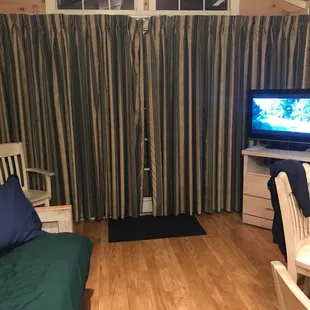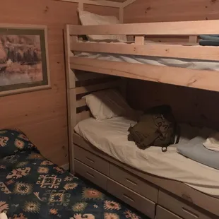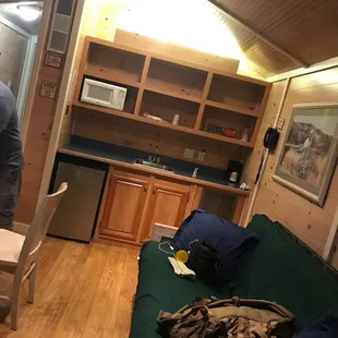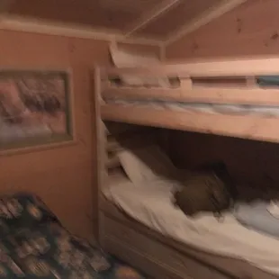The biggest waste of money. Stayed here last week, terrible accommodations. First off the cabin is tiny, it has 1 tiny bedroom you can barely move in, the bed was so uncomfortable, then there were 2 futons in the living area. You get 2 box tv's, yes the big box backs and only about a 19 inch screen with downgraded cable with maybe 10 channels. There is a frog infestation, i found a frog when i was taking a shower. The bathroom has no room to move in. They do not restock your room, i had to ask for toilet paper. The pool is filthy, leaves and debris covered the bottom. This cabin does not justify the outrageous price they charge. First and last time. Will never stay here again.