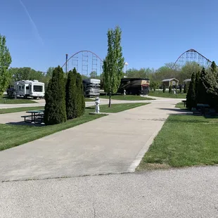 This is a very nice, well kept RV park in Kansas City. Fully paved sites, picnic table and trash can at each site. Pool was very clean and had a life guard, which you don't see often at RV parks.My husband hesitated to stay here because he was concerned about 'noise', being it was in an amusement park and thought there were be a lot of kids running around. However, that was not the case.The staff was very accommodating and helpful and available until around midnight, I believe.We would definitely stay here again in the future.