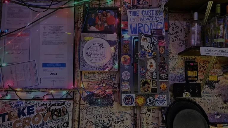 graffiti on the wall of a bar
