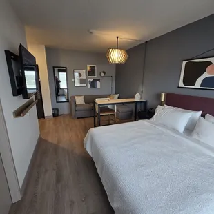 *FIRST TO REVIEW ALERT*I'm honored to be the first to give you the skinny on this place!Beautiful new addition to Henderson. Right now, it's the only Hotel on water street! Opening in late November the Atwell suites is an intimate and stylish hotel. CHECK IN: Quick and easy and lobby smells wonderful!ROOM: THEY MADE GOOD USE OF A SMALL SPACE! brand new fixtures, brand new modern stylish accomodations. There is a refrigerator a microwave and a couch and a big island table in the middle. The bathroom and shower were adequate and the room utilized a black and white color theme. Also luxury bath products, but in small bottles still, not in dispeners, like the latest hotel trend.They have complimentary breakfast in the morning and free juice and coffee in the lobby.Being just steps from a small casino (The Pass) this is the perfect quiet stay! By the way, the hotel also has its own bar, & wine bar with bar food.The 2nd floor was dedicated to confortable seating space with couches, a conference room (The Study) and a fitness studio and a very nice one. Tucked in the back, a pool yep you read that right. No hot tub though.Ill be back for sure.