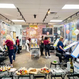 This was truly an amazing experience! I was surprised upon walking in that this is also an art gallery with so much beautiful and unique artwork on display and for purchase. Our art teacher was incredible and the theme for the night was "Abstract". She explained thoroughly what Abstract art was as she walked around helping each student supplying paint and brushes. Food, wine & beer were also offered on their menu! I got a charcuterie board and an amazing Grapefruit beer to pair it with which was all delicious.I really can't wait to go back and make this a regular night out with friends. If you haven't been here I suggest doing an art class here or simply stopping in to admire their art gallery. You won't be disappointed!