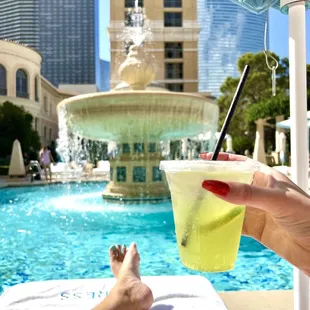 Relaxation to the Mac here at Cypress! With the water fountain and view of the towering hotels, one can't help but feel free of all the stress of the the world.With tons of lounge chairs and umbrellas, it's a great spot to unwind. Gather yourself and head back to the grind of the casino tables.
