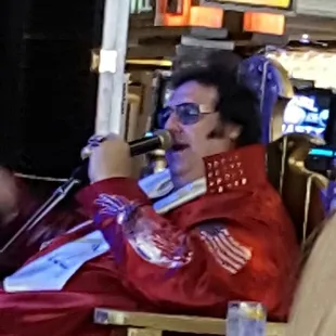 Always a great performance by Big Elvis! Does requests and it's a free show so tip him when you ask for a song. No two shows are alike and well worth it.