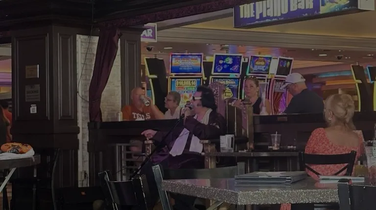 What a fun way to celebrate the 4th, with "Big Elvis"! Did you know "Big Elvis" is the first live show to return to the Las Vegas Strip since all the COVID-19 closures? 5-Stars to Pete Vallee, who has been recognized as one of the top 10 Elvis impersonators in the USA. He's been doing "Big Elvis" for years in Vegas and I can see why. If you close your eyes while he's singing, you'll swear that Elvis was in da House. That impersonation of Elvis' unique singing voice is amazing! He performs seated on a "throne", so don't expect classic non-stop Elvis hip-throbbing moves. During the 40 minute set, there's also fun trivia facts and photos of Elvis on a screen.The Piano Bar at Harrah's is always a fun place to hang. Live music, drinks, and jammed pack crowds are what this place is all about. Uh, wait...scratch the jammed pack crowds now since their COVID-reopening. Tables are definitely spaced far apart, as are the performers from the audience. You can also sit outside, but you won't feel as much a part of the scene. There's also no more sitting by the piano, so the lively vibe has definitely softened a bit, but it is what it is during COVID times. VIVA Las Vegas!!