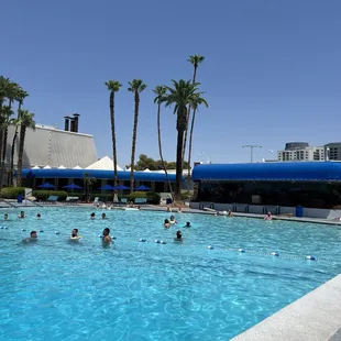 Pool is humongous and super clean. Staff is super friendly and accommodating. We paid for a canopy day bed and sure glad we did as it was 115 degrees out! The drinks are super expensive and disappointed in the food. No cheeseburgers or fries. No kitchen so what the have comes out of a refrigerator- like salads, hummus or 2 options of sandwiches. Everything is premade and I don't eat mayo so no sandwich for me. Wish they had real food while sitting out drinking all day.
