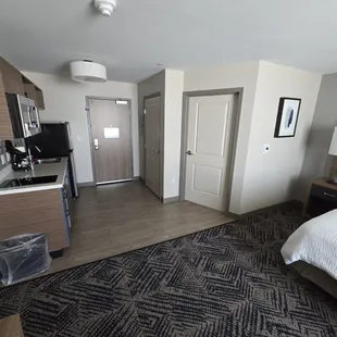 This is a newer Candlewood Suites in Las Vegas just off the strip on Tropicana. Location:Suites are within walking distance of Tropicana Hotel & Casino, Luxor, New York New York, Excalibur, Mandalay Bay and MGM.Area is safe during the day and night because Tropicana is a very busy street with many police officers in cars.Rooms:The standard king is on the small side when comparing to a Holiday Inn (I travel for work). This room is newer, with no damage to the furniture. The room was clean. Included: Refrigerator and Freezer, microwave, sink, dishwasher (which I find strange), and a 2 electric burner cooktop. No oven.The room has USB outlets next to both sides of the bed only. No USB outlets at the small desk area (again strange). They could have used lamps with USB outlets by the small desk area.No area to have your luggage open during your stay. The TV looks like a new LG 42" TV with basic channels.Hotel Details:Large dogs permittedPets permittedSafety deposit boxes at receptionIce machineAir conditioning in public areasBusiness centerLaundry serviceHotel built in 2020, Number of floors 5Total number of rooms 122Number of single rooms 83Number of double rooms 39Non smoking property Deposit:Upon check in the hotel collects room, tax, and a fully refundable $50.00 deposit.Housekeeping:Candlewood Suites does not offer daily housekeeping.Points:I don't understand why, but you will not receive 2x points if you are an IHG rewards member regardless of your status. I am Diamond Elite. That is the highest level.Lobby:The lobby is new, the staff was very friendly and they have a very small area offering sundries, drinks, and some snack food items (all for purchase).Soap, Shampoo, and Conditioner:Candlewood Suites has these items inside the shower in pump style dispensers.Parking:Parking was simple, but it's $12 per day.Check In/Out:3 pmCheck In12 pm CheckoutThe hotel hallways are new, and clean. The elevators (2) are fast, and clean. The lobby is inviting and designed with welcoming colors.All in all, very good so far.