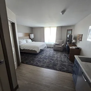 I wanted to try something other than the Homewood this time and IHG go for better rates than Hilton in Vegas near the airport. I had a consistently great experience at the Candlewood El Paso and hoped for the same there. This location delivered on most counts but there are a few things to keep in mind. First the good: they have appliances such as Foreman grills or juicers that you can check out for your room, guest laundry is free (you just need to provide the detergent and dryer sheets), and they have snacks and small pantry items available for sale near the front desk. The full kitchen is the same as other Candlewoods. Microwave, 2 burner electric stove, full kitchen and a useful inventory of utensils, cups, plates and pots. The only really big drawback is the parking. It's $10.99 a day and for some reason, they use a web-based service that's separate from IHG to pay for it. In El Paso, parking was free so that was an unexpected and unwelcome surprise. The hotel is also just off Tropicana which can really back up if people are rushing the Strip. Lastly, I really wish IHG would give more thought to using Bluetooth to open their doors, privacy issues be damned.
