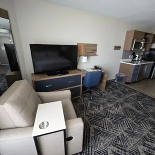 The hotel itself was very clean and comfortable. Has a big kitchenette and the bed was very comfortable. I was actually preparing to leave a nice review. However, Our car was parked in front of the hotel's front door and our expensive e-bikes were stolen off of our vehicle, even though they were triple locked. We had no idea that a hotel like this had no security or outdoor cameras for deterrents. We asked to have the manager call us when he/she arrived at work, and we received no call. I clearly saw the sign that management is not responsible for theft from vehicles, but expected there would be reasonable safety security measures in the parking lot. Due to this lack of parking lot safety, I would never recommend this hotel. Also did not appreciate that the manager did not call us.