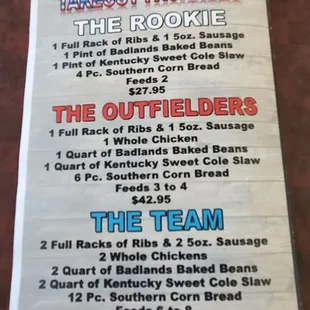 Walk in they told me the rib slab package - came to 26$ i got what looked like last nights leftovers 2 pieces of bread and 1 small beans and 1 small slaw. Total charged 26$. Menu they gave me on way out says package is 27.95$ and with slab you get 1 whole chicken 1 PINT slaw and 1 PINT beans. I got scammed. These small spots ALWAYS wiggle you. Food was just as bad. One of ribs looked like it came off someones half eaten plate. There wasnt even any sauce on the ribs wtf is that extra $$$ come on man. Food was supposed to be pick me up for my mother and it ended up an embarrassment all around. A complete and total waste of time and money.