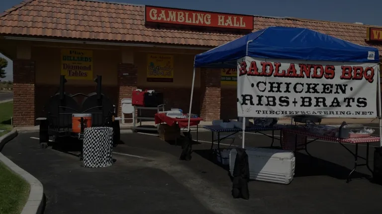 One of the best BBQ we ever tasted! The BBQ sauce is amazing! Kids loved it too. It's inside where it says bar and grill. Nice and clean restaurant! We had the chicken fingers, ribs, and hamburger! All were very delicious! The ribs were amazing! A must try!