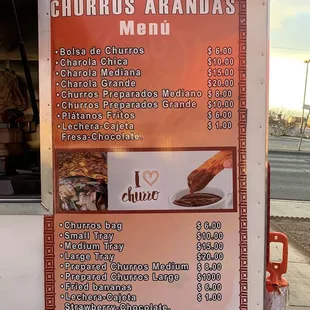 a menu for churros