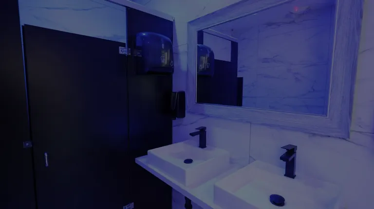 a bathroom with a purple light