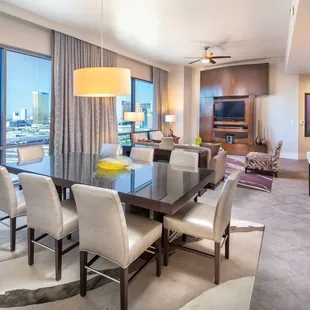 First with transparency : we're Wyndham Vacation Club owners. We've stayed at many WVC properties in Vegas and this is a nice one, though off the beaten path. There are some eating and drinking spots within walking distance and the Rio is across the street. The hourly shuttle to TI is nice but small so you're not guaranteed a seat. The daily 10am grocery shuttle is nice too.Loved our Strip view. Liked the 24 hr convenience store and game room (though why make us pay for games when we've already paid enough ? Give members tokens or something...). One bedroom lock off unit is comfortable but bummer no stovetop burners. Bedding is comfortable and bathroom amenities nice. It's a great spot if you want to focus on the N end of the strip, Arts District and downtown.