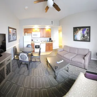 Decent enough property but it's very dated and has some maintenance issues.I rented a 1br unit because I was attending a wedding in Vegas with my daughter. We rented via Airbnb and I was a little worried the place would try wrangle me into attending a timeshare presentation, but they didn't. We were put in tower 1. Like I said, it's dated.The good: two separate sinks, 1 between the bedroom and bathroom, the other in the bathroom. The unit we were given was accessible. I didn't request that. The shower was huge. There was a separate Jacuzzi tub that we didn't use.The kitchen was well stocked with plates & such The fold out couch wasn't bad, my daughter had no complaints.The not so good: the toilet thought about flushing but didn't complete the operation. I wound up using the lobby bathroom more than once.The living room had a busted curtain pull on the blackout drapes. You can't hang dresses in either of the closets. The only bar is halfway down and is only good for hanging pants. It's ridiculous. We had to hang our dresses for the wedding over the jacuzzi tub.The door lock plate on the bedroom door was broken so the door wouldn't close.The appliances were long in the tooth. The place was probably state of the art in Y2K.It was pretty quit and felt safe enough.It was good, inexpensive home off of the strip but close enough to get there quickly. Lots of free parking.