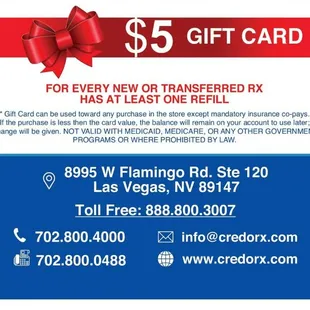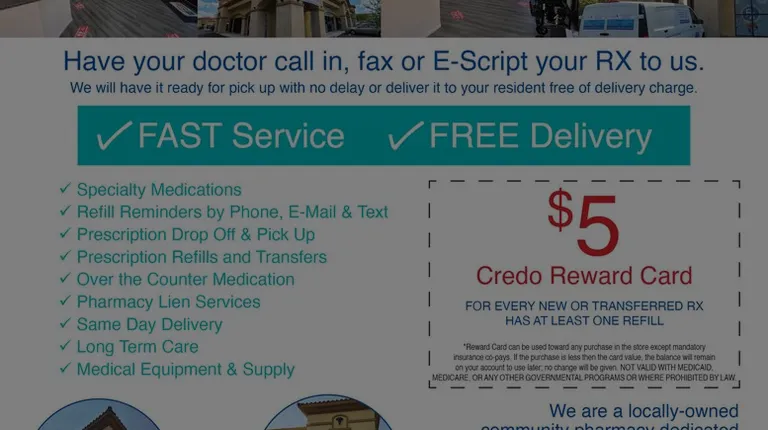 I was with CVS for quite some time and always had problems refilling my prescriptions, getting prior authorizations and getting my medicine on time. I saw the sign that a new pharmacy is now open and that they deliver. I went it, spoke to the pharmacist and the owner who was a very nice gentleman, very friendly and really accommodating. They transferred my prescription, got the authorizations needed, and delivered my medicine to my front door at a time most convenient to me. I highly recommend Credo to everyone in Las Vegas, they are doing what big chains will never do.Thanks Credo Pharmacy