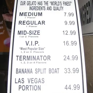 I have the same complaint about the pricing. The way it is laid out, that you do not see the prices until they bring you around the corner....it is quite deliberate. I know Vegas prices are higher, but it is gelato...miniature cup and spoon. I can't complain about the gelato, chocolate mint was divine, but the scam left a bad taste in my mouth.