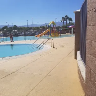 $8.00 for our family of three. Hubby wanted to come here for Father's Day, 2024. Cash or check accepted. Go through the bathrooms or other door. Covered area with shade. Lounge chairs for us. That is where we left our stuff. Shaded tables near the fence too.It was super sunny. Not a single cloud. The morning haze worried us but it wasn't an issue. We applied sunscreen before and during our visit. There are 2 slides. There is a pool. There is a children's area- if your child is taller than the bar, can't go down the children's slide; stringbean liked the shooting spots so he was turning it way up. No diving. Lots of lifeguards. No running. No hats or shoes on the slides. Safety break is about ten minutes. Outside showers. Bathrooms nearby. Fanily friendly. Fun place. You can reserve the party areas, for a price. Closes the summer season in early August.