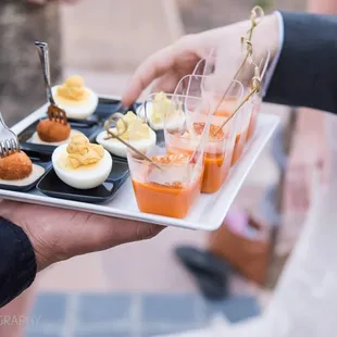 I live to host events (well, and for my family, lol) and I am always looking for great vendors especially vendors with great food! These guys are my favorite by far! They send a chef who works hard in your garage even in the heat and two servers (or more, if you need) who are happy to help and/or assist with anything. The food, oh the food, so yummy!! There is something so fun about appetizers and especially appetizers that are being brought to you on a silver platter! How can one resist? The answer is, you can't! They took my party to a whole new level and they will forever be my go-to caterer!