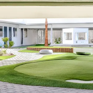 Hang out area, mini golf, seating, fire pit, photo op,