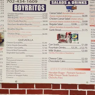 a menu for a fast food restaurant
