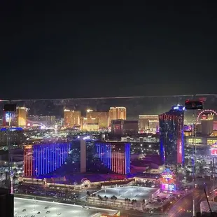 So this review is for NYE celebration. We haven't been on regular nights, not huge night club people. If you want the absolute BEST view bar none of the entire strip fireworks, I highly recommend this place!! Our group got a table, the minimum spend was a little steep, but after you get up there and see the view, it all makes sense. It was a mixed crowd of younger and older, so all ages welcome. They had different bottle packaged to choose from and some good champagne options to ring in the new year . Bonus part, you're not tied in either the strip madness. For those visiting, NYE the strip closes to cars about 5-6pm and doesn't reopen until 3-4am. Great atmosphere, great bottle service and amazing view.