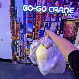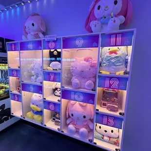 Go Go Crane on Spring Mountain another cool place for crane machines, gashapon machines (toys come in capsules with different prizes inside) and nice prizes to trade up for the plushies you got in the crane machines. Shout out to Jacob & Tyler super cool and friendly staff members. I like the lighting, the art work, the good selections for the plushies and the quality of the bags they give out to put your prizes in. A party of four and we had fun here. We did leave with some super cute items! We did get a prize capsule from the Hello Kitty Gashapon machine we didn't mind paying $4. I was happy with the prize I got. We will be back again.