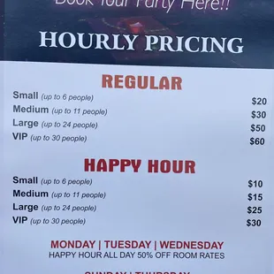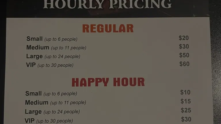 This place was great all the staff super nice and we did my son party here his autistic and we all had lots fun. Rented the VIP on a happy hour and I thought was so cheep. I didn't eat lots of food but we had party platter and that was good. They allowed us to bring son cake which was awesome. The lights and the sitting was clean and cool. We had lots fun.