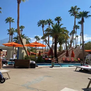 Honestly this pool complex was the main reason we booked our hotel here and it did not disappoint. They have a long lazy river, giant jacuzzi, and multiple pools with shady areas, lounge chairs, and pods/cabanas that are available to rent. All you need to do is scan your room key and show your ID at the entrance, and you're able to grab free towels and make your way down. There are a couple spots to grab drinks around the complex, and they have a main cabana grill which offers the basics like sandwiches, burgers, fries, etc. You're able to eat it poolside, just not in the actual pool. Note - if you want to tubing down the lazy river, bring your own tube! They do not have rentals, and only sell them for $25-30 (depending on the size).