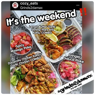 Loco Moco, furikake Chicken, Dynamite Ahi and Poke